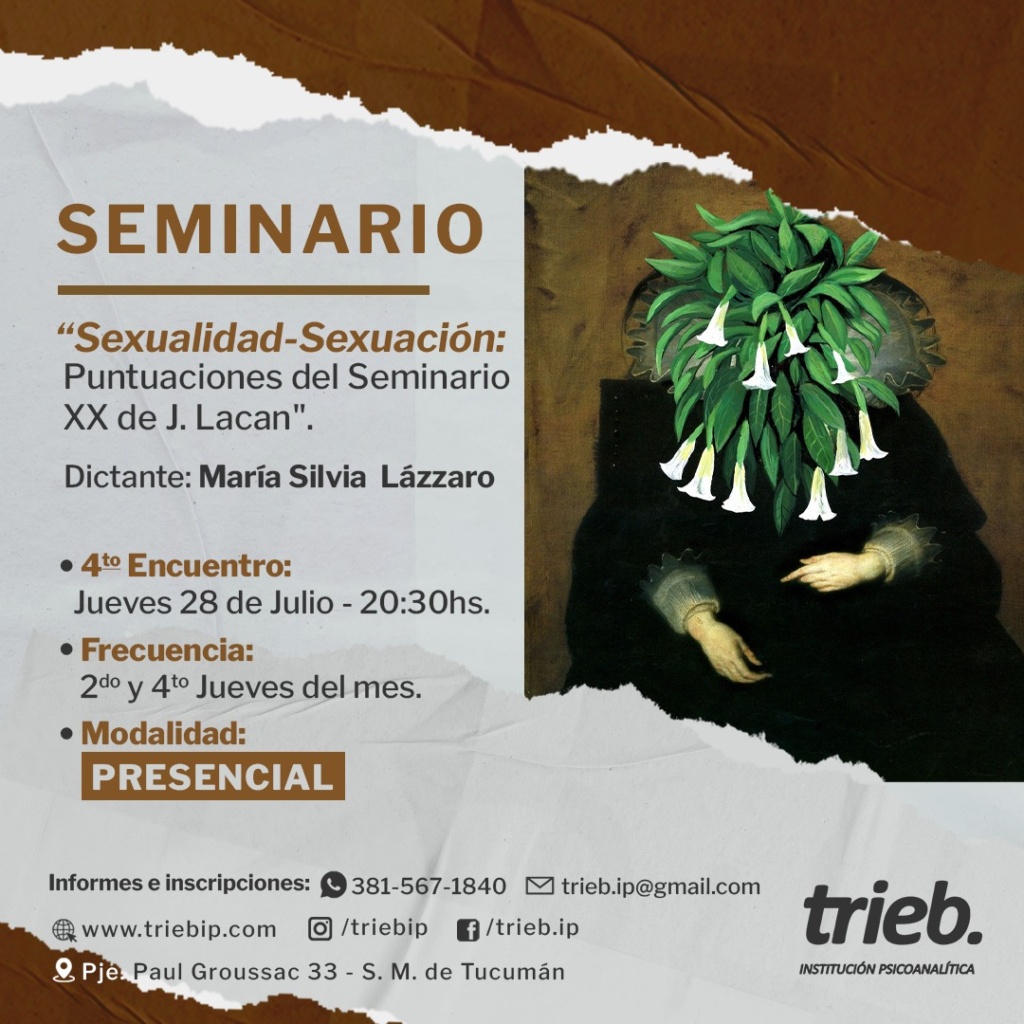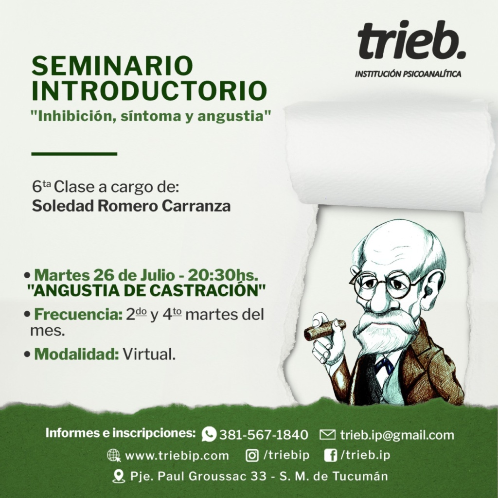 Trieb - Institución Psicoanalítica Integrante de Convergencia, Movimiento Lacaniano por el Psicoanálisis Freudiano. Sobre nosotros Noticias SEMINARIO INTRODUCTORIO: «Inhibición, síntoma y angustia» – 8va Clase 🗓️ Martes 9 de agosto 20.30 hs.📌 Modalidad: PRESENCIAL y por zoom. En esta clase y la siguiente les propongo «El Seminario del Acto Psicoanalítico. Una introducción» – tercer encuentro 📌Dictante: Liliana Fernández🗓️ Clase martes 2 de agosto - 20:30 hs.📖 Frecuencia quincenal: 1 y 3 martes del mes.💻Modalidad: Virtual Curso: «Conversaciones sobre clínica con niños» ¿Qué nos convoca hoy a recibir un/a niño/a en análisis?, ¿desde qué fundamentos sostener esa praxis?Conversaciones sobre clínica con niños Seminario: «Sexualidad-Sexuación, puntuaciones sobre el Seminario XX de J.Lacan». CUARTO ENCUENTRO REPROGRAMADO Comunicamos que el encuentro programado para el día Jueves 28/07/22 se suspende. El 4to encuentro tendrá lugar el 11 de Seminario: «Sexualidad-Sexuación, puntuaciones sobre el Seminario XX de J.Lacan» – Cuarto Encuentro Cuarto encuentro: Jueves 28/07/22 a las 20,30hs. Modalidad: Presencial únicamente. Con el deseo de compartir estas cuestiones teórico clínicas que nos interpelan, SEMINARIO INTRODUCTORIO: «Inhibición, síntoma y angustia» – 7° Clase Martes 26 de julio- 20.30 hs. "Angustia de Castración" Clase a cargo de: Soledad Romero Carranza ¡Los esperamos! « Anterior 1 … 26 27 28 29 30 … 46 Siguiente » Contacto Por favor, activa JavaScript en tu navegador para completar este formulario.Nombre *NombreApellidosCorreo electrónico *Comentario o mensaje *Opciones múltiplesConsultaInscripciónWebsiteEnviar