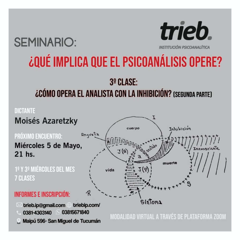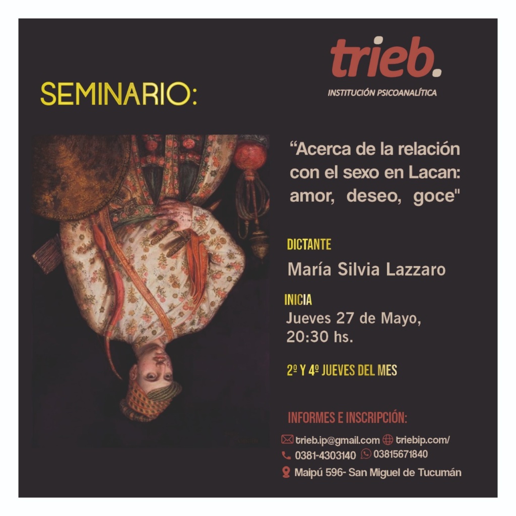 Trieb - Institución Psicoanalítica Integrante de Convergencia, Movimiento Lacaniano por el Psicoanálisis Freudiano. Sobre nosotros Noticias Los invitamos a la Clase 5 del Seminario ¿Qué implica que el psicoanálisis opere? «Consistencia, agujero, ex-sistencia» «El síntoma es... Seminario Introductorio a cargo de Silvia Polti. Seminario Acerca de la relación con el sexo en Lacan: amor, deseo y goce». A cargo de María Silvia Lazzaro. Inicia el Jueves 27 de Mayo a las 20:30 hs. Clase 4 del Seminario ¿Qué implica que el psicoanalisis opere?»Consistencia, agujero, ex-sistencia» «El síntoma es del efecto de lo Simbólico... En la cuarta clase del Seminario Introductorio que estará a cargo de Silvia Polti, trabajaremos algunas articulaciones conceptuales sobre el... «Seminario ¿Qué implica que el psicoanálisis opere?» 《¿Cómo opera el analista con la inhibición? (Segunda Parte)》 « Anterior 1 … 37 38 39 40 41 … 46 Siguiente » Contacto Por favor, activa JavaScript en tu navegador para completar este formulario.Nombre *NombreApellidosCorreo electrónico *Comentario o mensaje *Opciones múltiplesConsultaInscripciónWebsiteEnviar